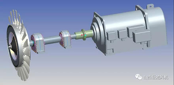礦用短軸主扇風(fēng)機(jī)有效解決了対旋主扇風(fēng)機(jī)大中型號(hào)葉輪超重造成電機(jī)軸承壽命縮短而引起的風(fēng)機(jī)運(yùn)行安全隱患的問題,確保了主扇風(fēng)機(jī)長期運(yùn)行安全。采用電機(jī)內(nèi)置的架構(gòu),從而不用設(shè)置長軸,結(jié)構(gòu)緊湊、土建造價(jià)低,并且避免了因基礎(chǔ)沉降而造成的運(yùn)行安全隱患。