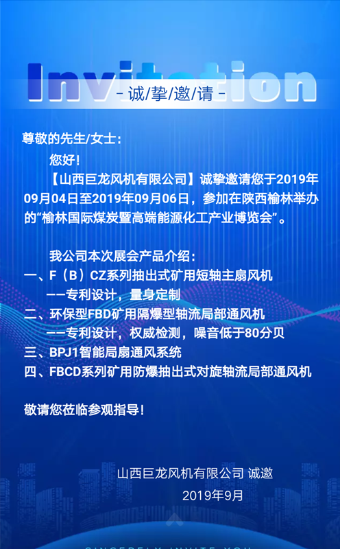 【山西巨龍風(fēng)機(jī)有限公司】邀您參加陜西榆林國(guó)際煤博會(huì)