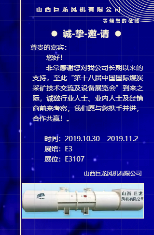 【山西巨龍風機有限公司】誠邀您蒞臨北京”第十八屆中國國際煤炭采礦技術交流及設備展覽會”參觀指導!