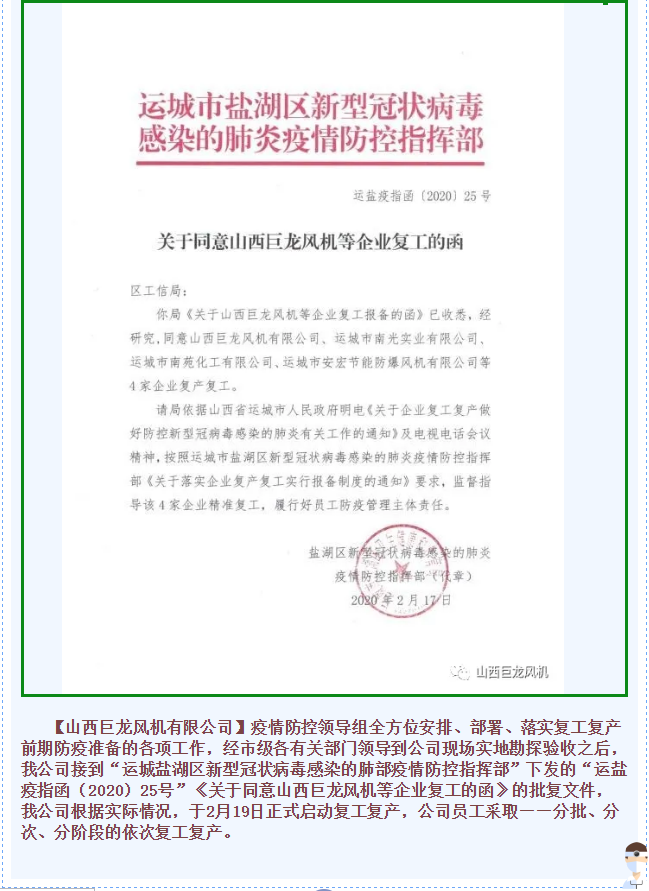 復工復產|【山西巨龍風機有限公司】開足馬力,加快生產!